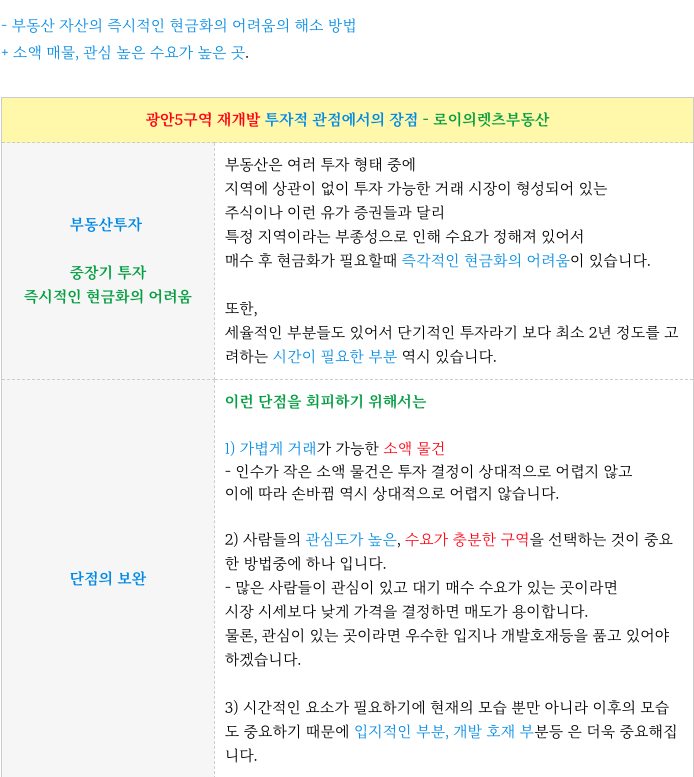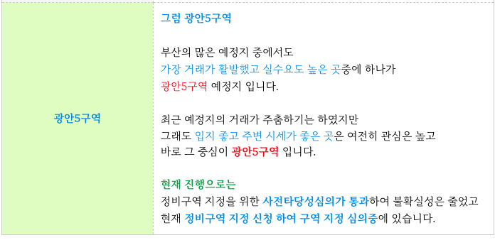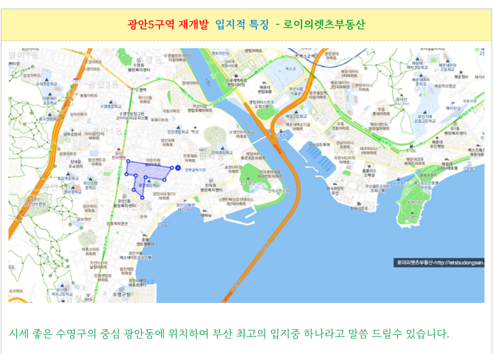 광안5구역 재개발 매수전 투자적 관점에서의 장점을 간략 정리 드립니다.