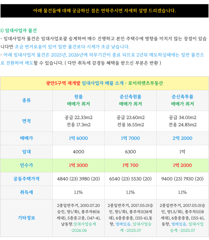 - 임대사업자 매물과 임대사업 아닌 물건으로 나뉘어 소개 드립니다.