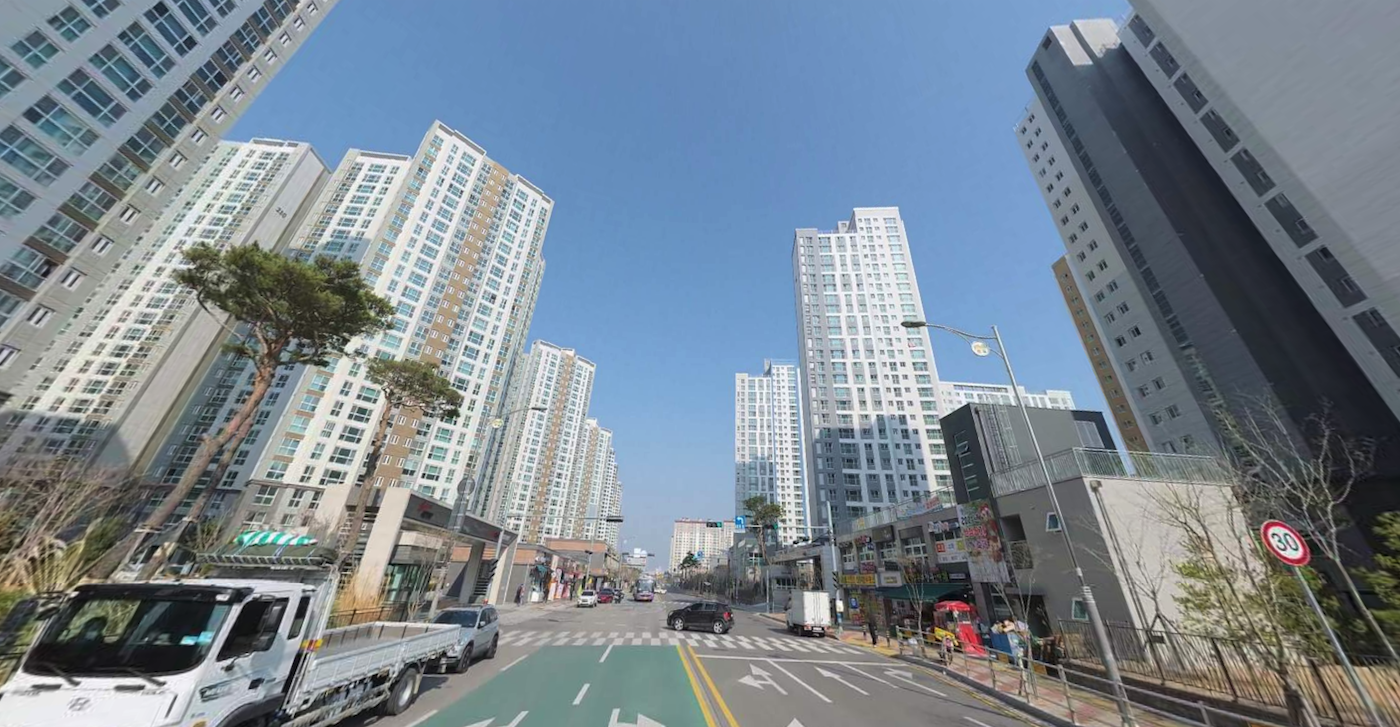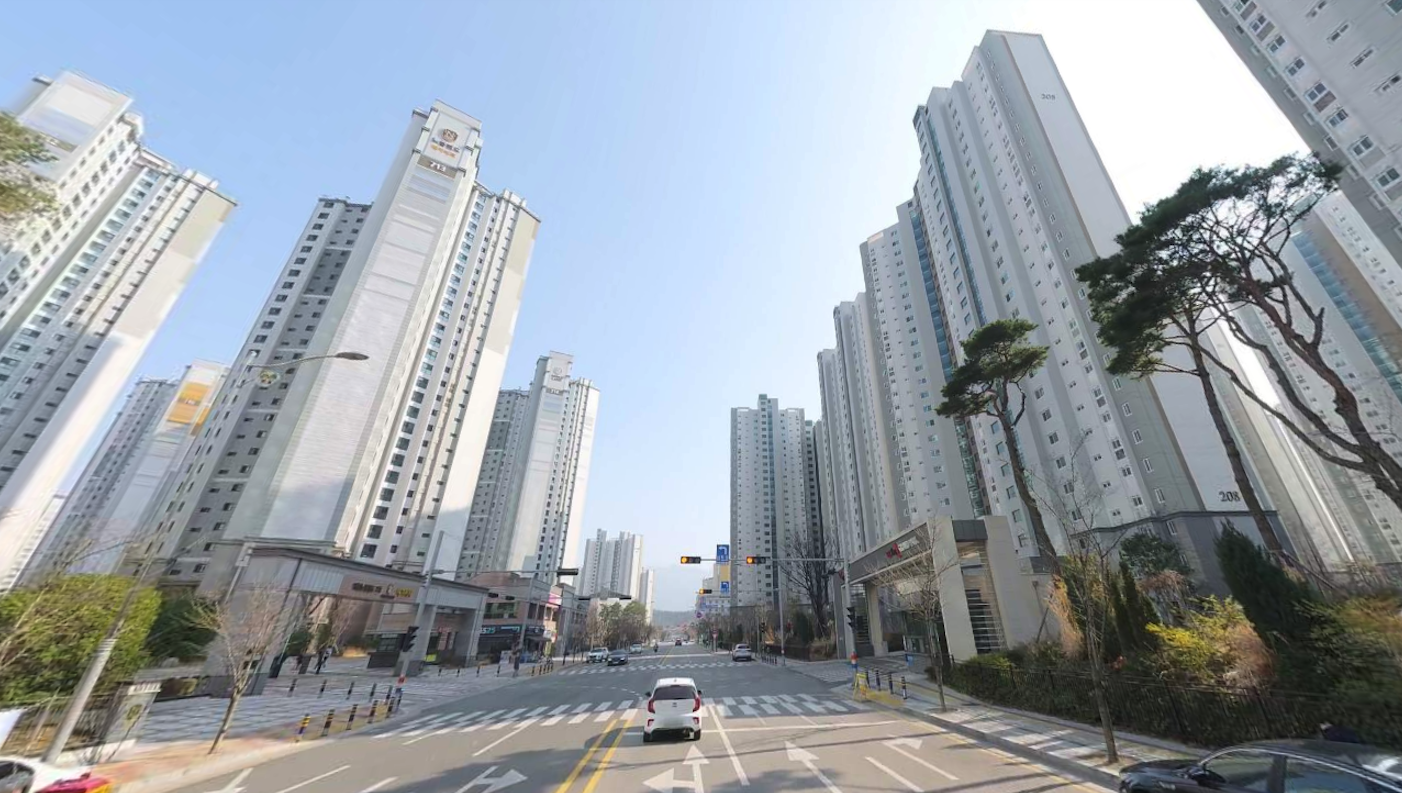 증산 신도시내 대단지 아파트 단지로 둘러 쌓여 있는