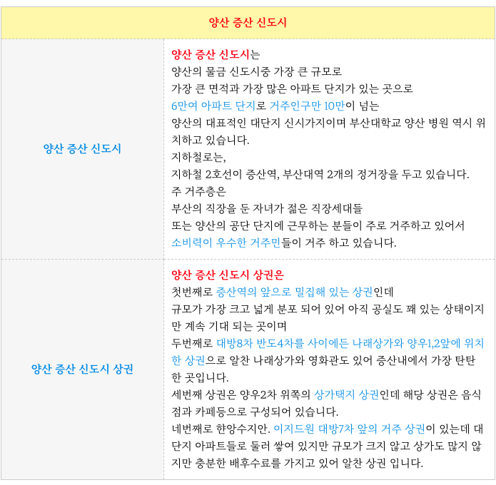 매물이 위치한 양산 증산 신도시에 대해 간략 설명 드리겠습니다.