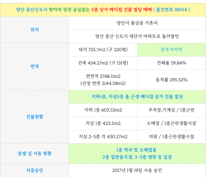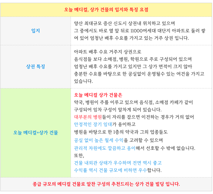 배후 수요 좋은 - 양산 증산 공실없는 메디컬 + 상가 건물 빌딩 매매 :