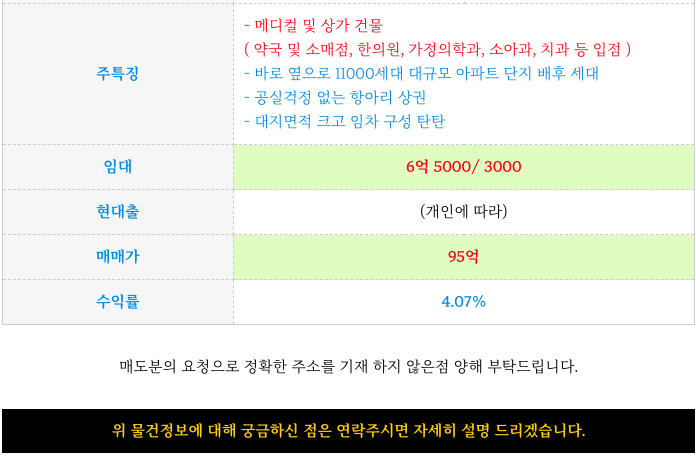 올근생 5층 메디컬+상가 건물 ( 약국, 소매점, 다양한 병원 입점 ) 입니다