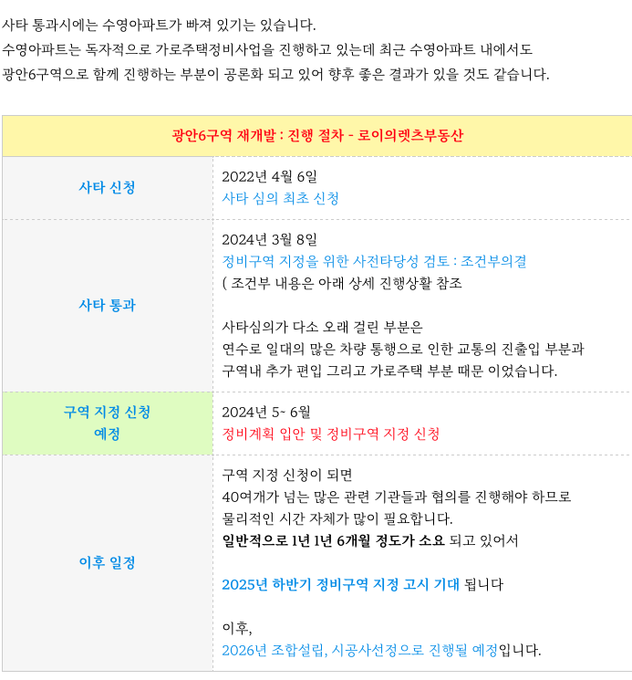 광안6구역 재개발 주요 일자별 진행과 향후 일정 등 추가 정보는 아래 페이지를 참고 부탁드립니다.