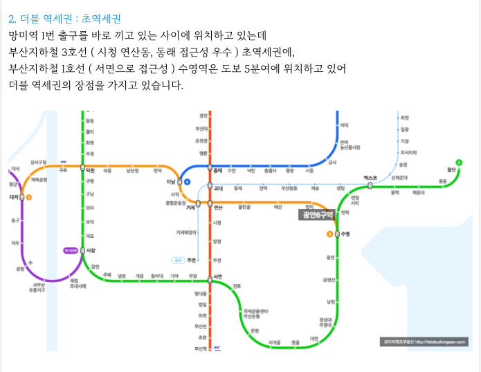 수영역 역시 도보 4분여로 모두 이용가능한 역세권 입니다
