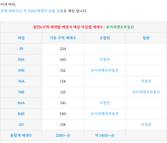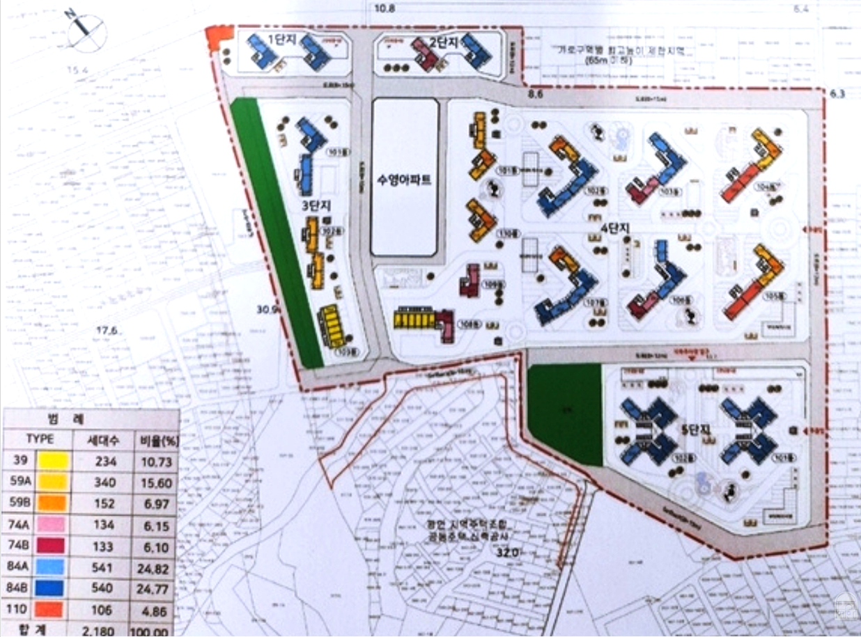 광안6구역 재개발 추진위 예상 각 타입별 세대수 입니다.
