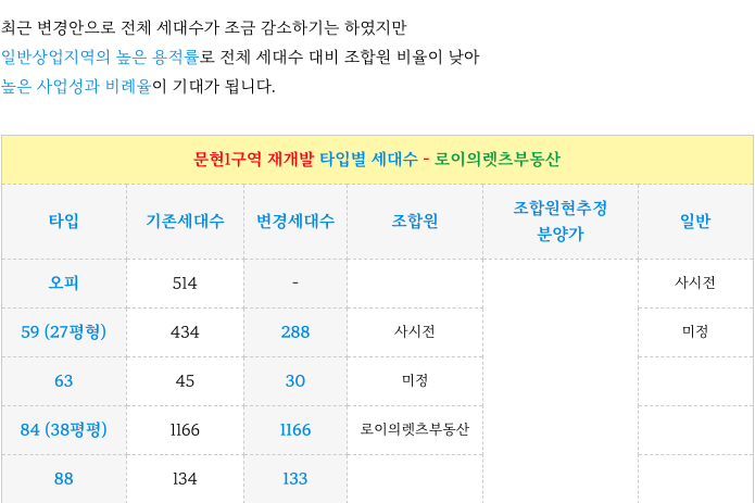 문현1구역 재개발 각 타입별 세대수 소개해 드리겠습니다.