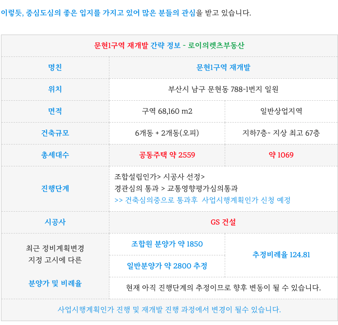문현1구역 재개발 최저 매물 그리고 최근 진행 소식 소개 드리겠습니다.