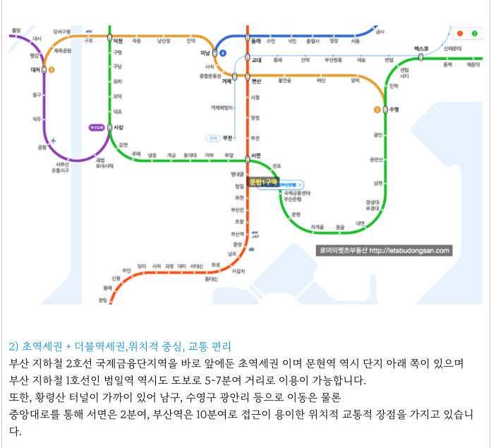부산 핵심 지하철 2개 호선을 모두 이용할 수 있는 더블 역세권 입니다.