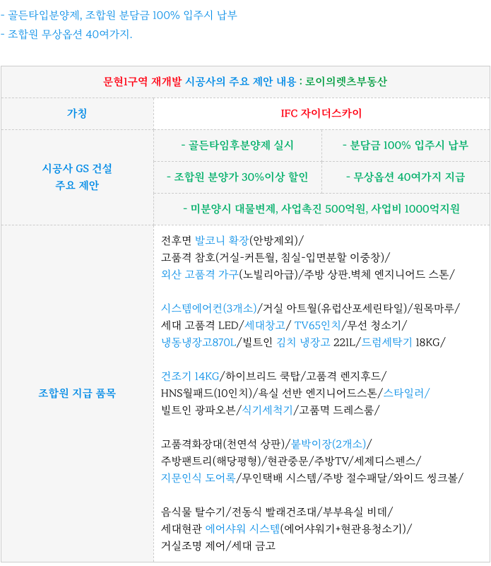 문현1구역 재개발 시공사 GS건설의 주요 제안 부분 소개 드립니다.