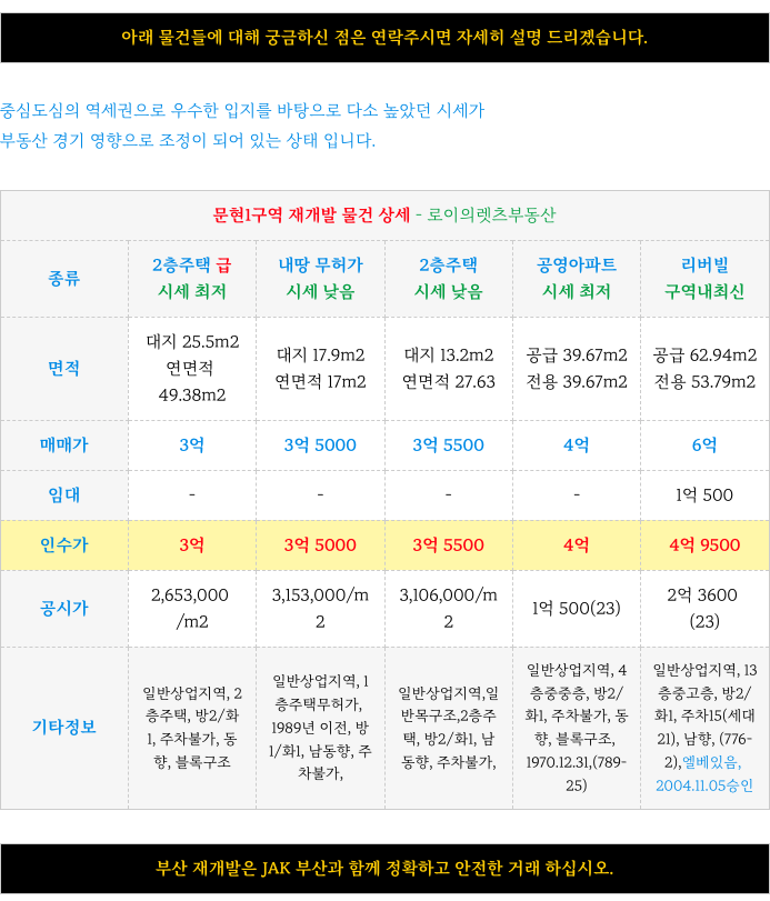 부산 전역 재개발에 대해 궁금하신 점은 방문 또는 연락주시면 자세히 설명 드리겠습니다.