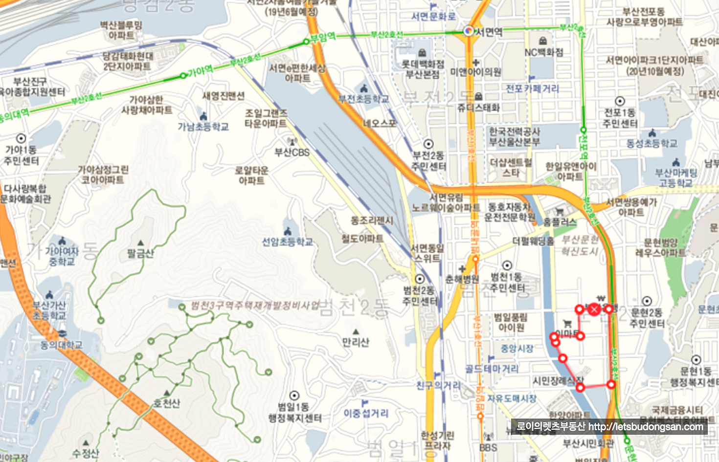 서면 역시도 불과 지하철 2정거장 거리고 서면의 풍부하고 다양한 상권을 이용가능합니다.