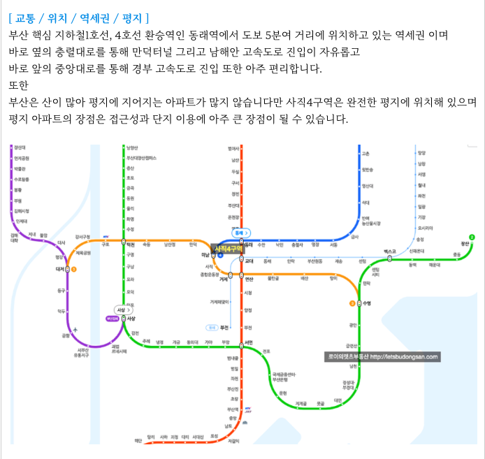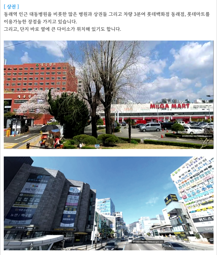 - 동래역 역세권, 초품아, 중품아, 학군좋은, 평지, 온천천, 동래 상권 등.