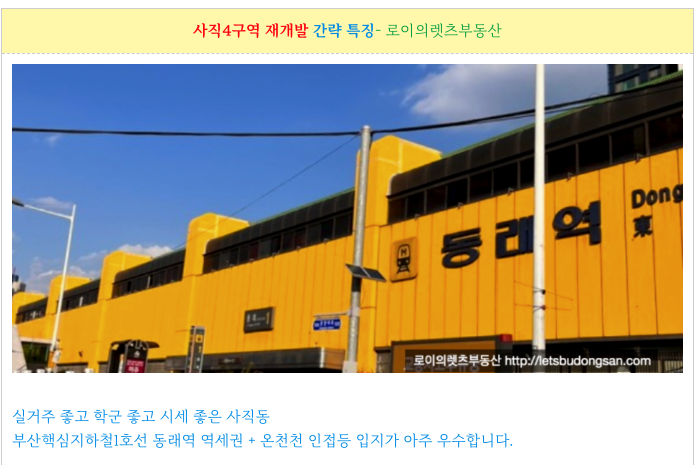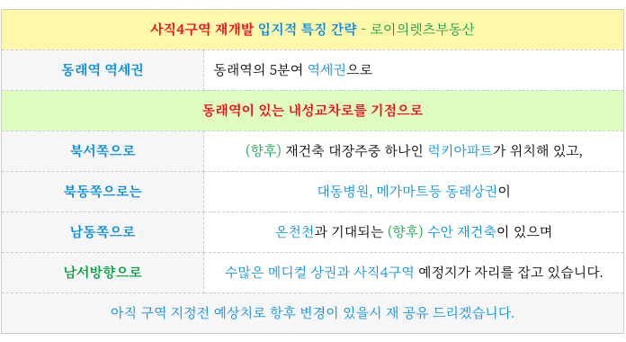 동래역 역세권 사직4구역 재개발 소액 매물 과 일정