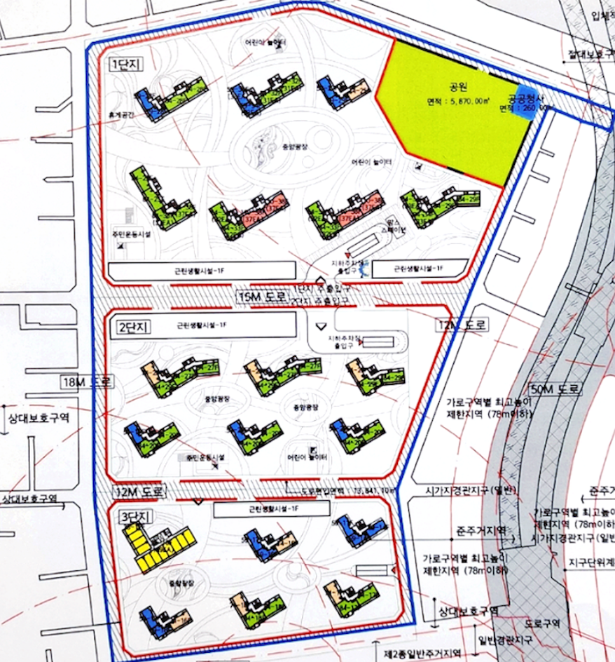 단지내의 이동성과 접근성 그리고 대지의 활용도 및 단지 배치가 편리합니다.
