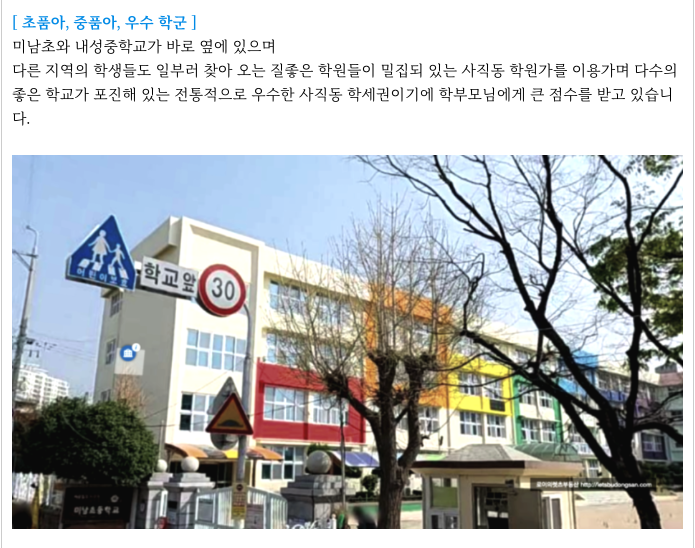 사직동 학원가 역시 가까이 있고 주변 학군 역시 좋습니다.