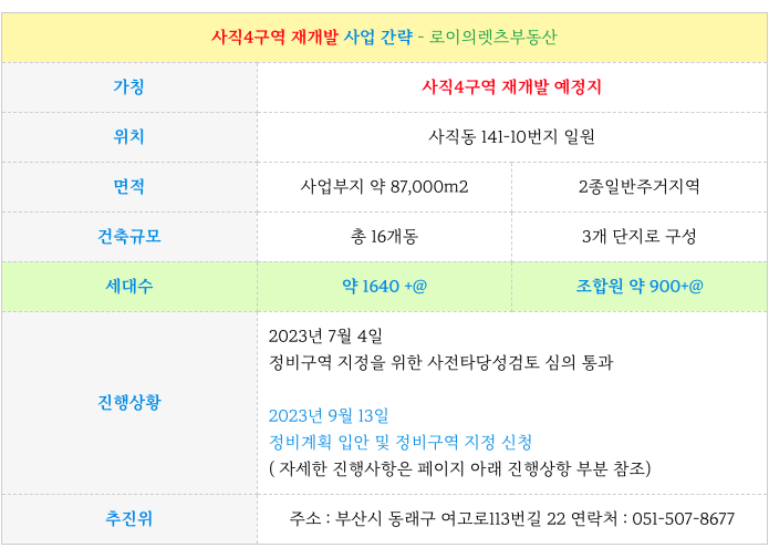 부산 전역 재개발에 대해 궁금하신 점은 방문 또는 연락주시면 자세히 설명드리겠습니다.