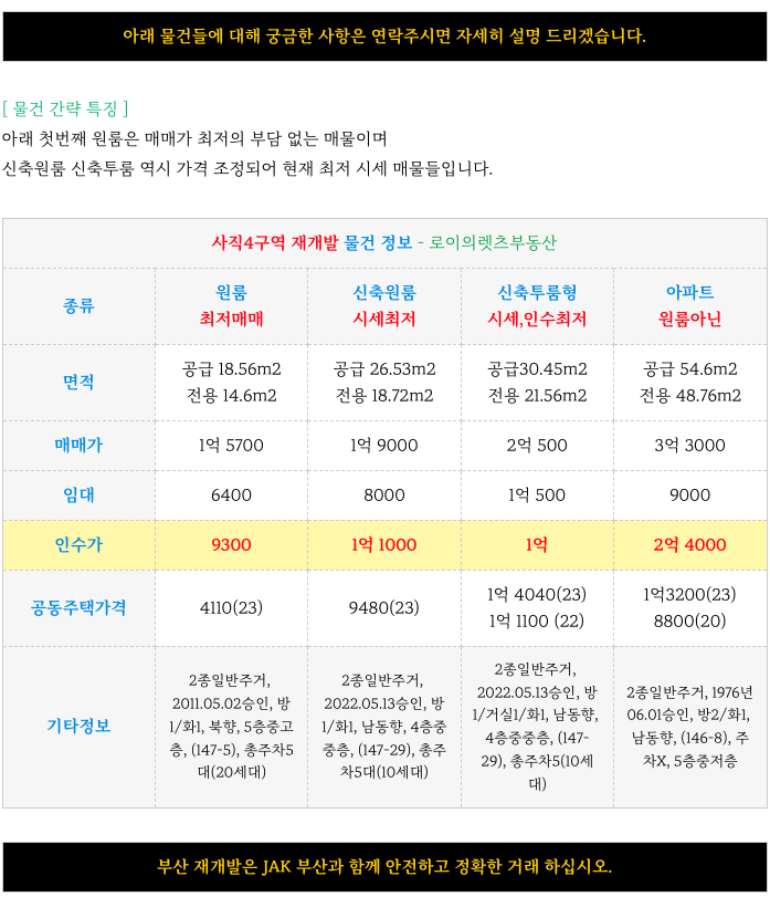 사직4구역 재개발 현재 최저 소액 매물 소개해 드리겠습니다.