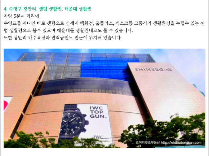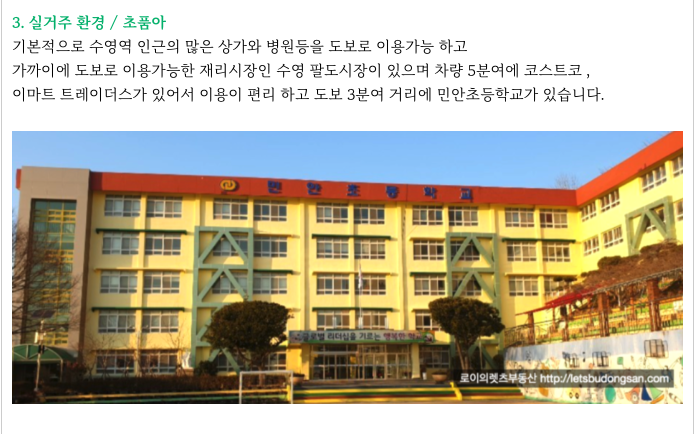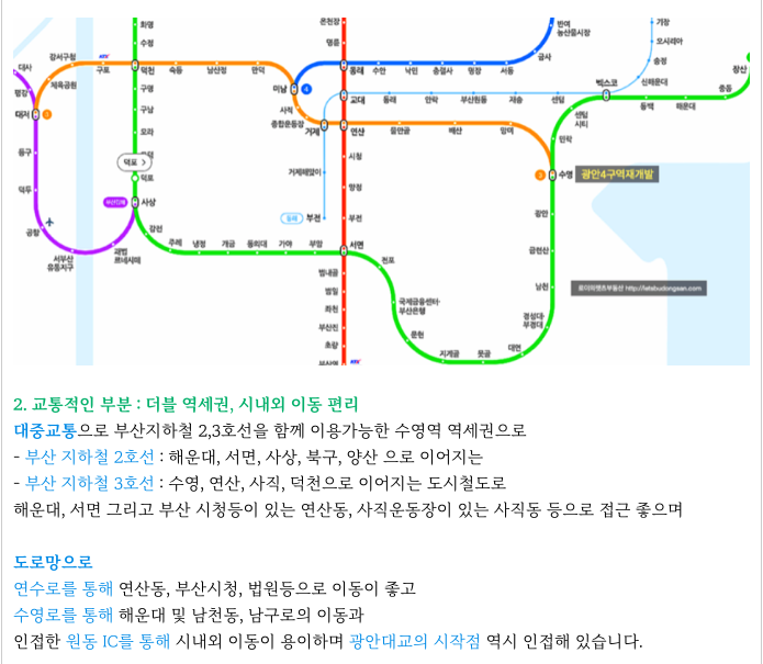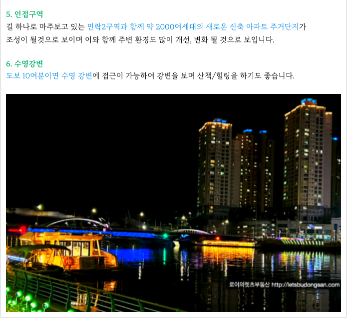- 가장 큰 장점은 시세 좋고 실거주 좋은 수영구