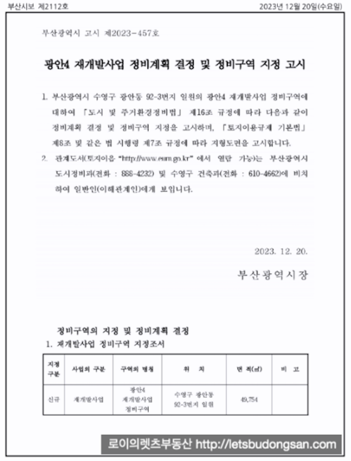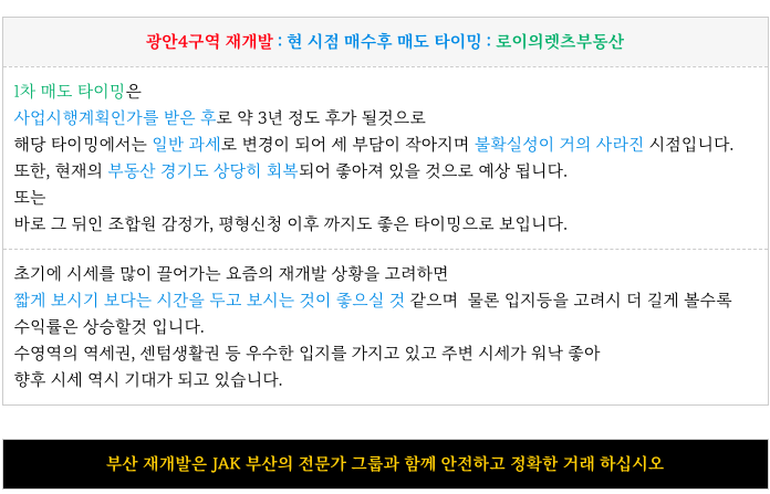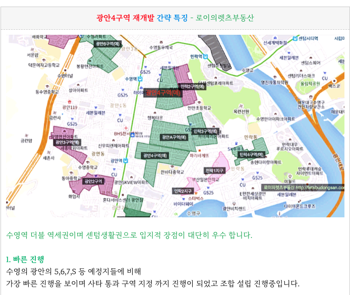 수영역 역세권 광안4구역 재개발 최저 매물 과 현 진행 체크