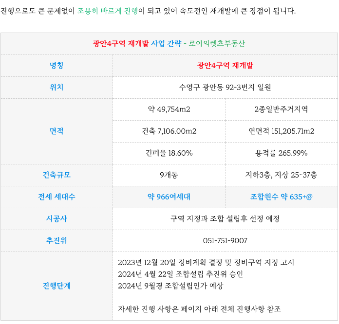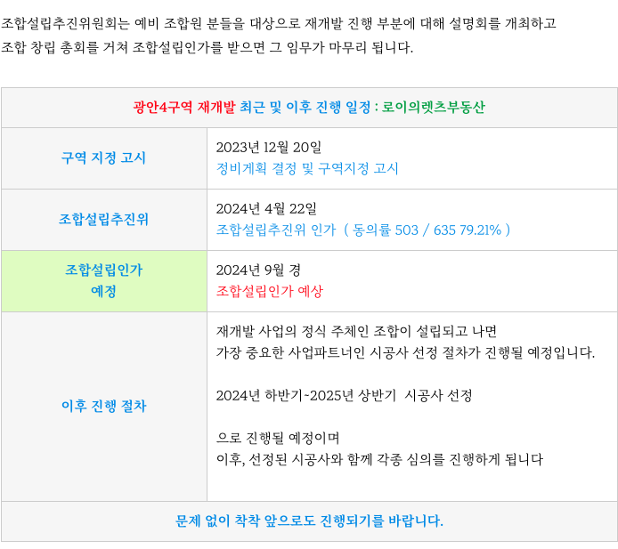 조합설립중인 광안4구역 최근 진행 소식 & 최저 매물 소개 드리겠습니다.