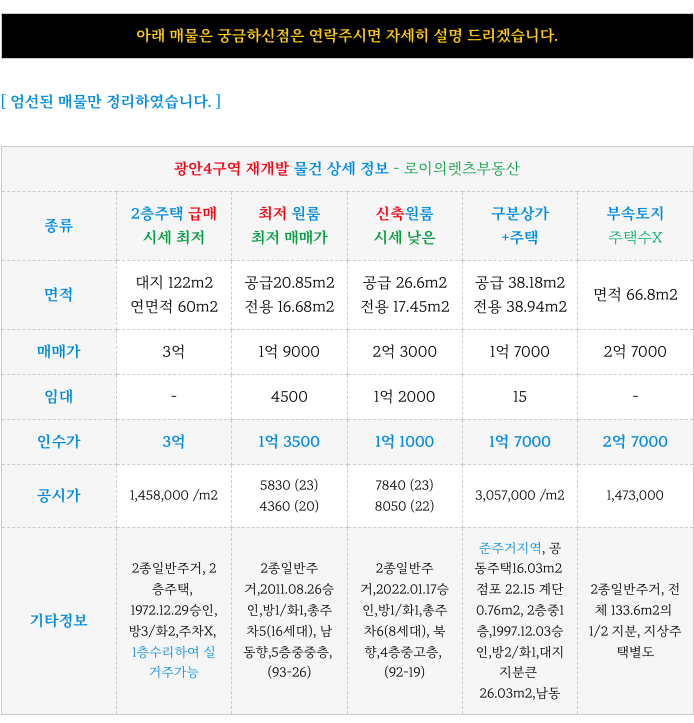 부산 경남 건물 토지 상가 주택 등 부동산 물건 투자 및 물건 접수 받습니다.