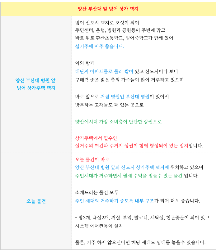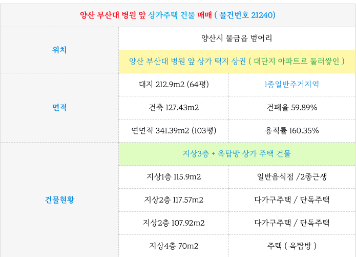 오늘 양산 부산대 병원 앞 상가주택 건물 제원 정리해 드리겠습니다.