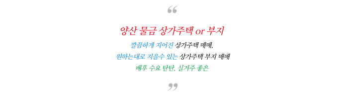 실거주 + 월세 수익 - 양산 부산대 병원 앞 상가주택 건물 & 나대지 매매 물건 ( 물금 범어 신도시 택지내 )