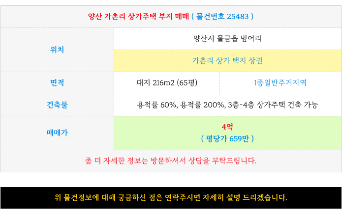 ( 양산 범어택지 상가 주택 매매, 가촌리 상가주택 부지 매매 )