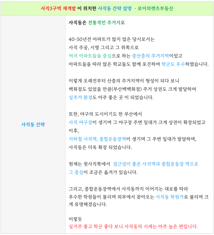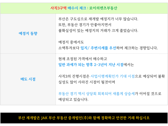 동래구 사직동 - 사직3구역 재개발 - 현 최저 매물