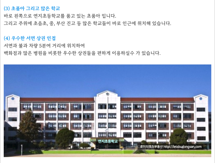 부산 중심도심 서면과 불과 차량 5분여 거리로 인접해 있어서
