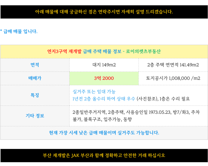 안녕하세요 로이의렛츠부동산 ( JAK 제이에이케이 부산 ) 입니다. 오늘은 연지3구역 재개발 급매 주택 ...