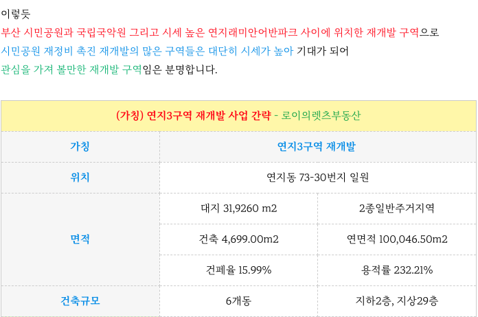 구역지정된 부산 연지3구역 재개발 : 급매 주택 매물 소개