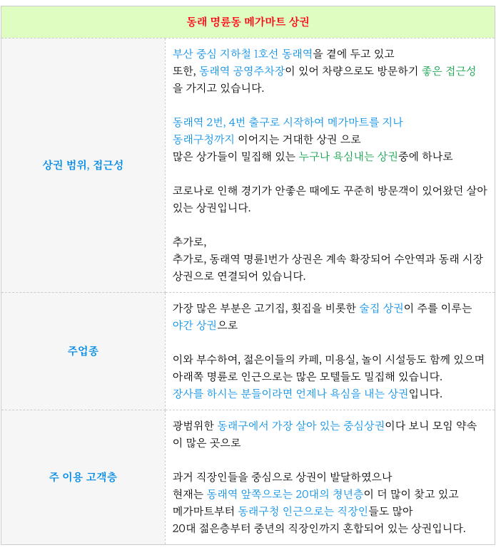 동래역 명륜1번가 상권에 대해 간략 소개해 드리겠습니다.