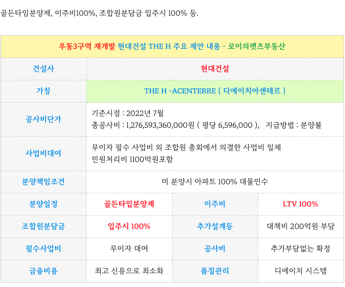 향후 THE H 프리미엄 특화 설계 건축시 공사비 상승 억제에 대해 큰 도움이 될것으로 보입니다.
