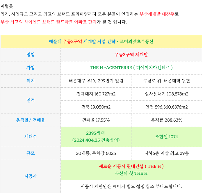 우동3구역은 전체 약 2400여 세대의 해운대 마지막 대단지로