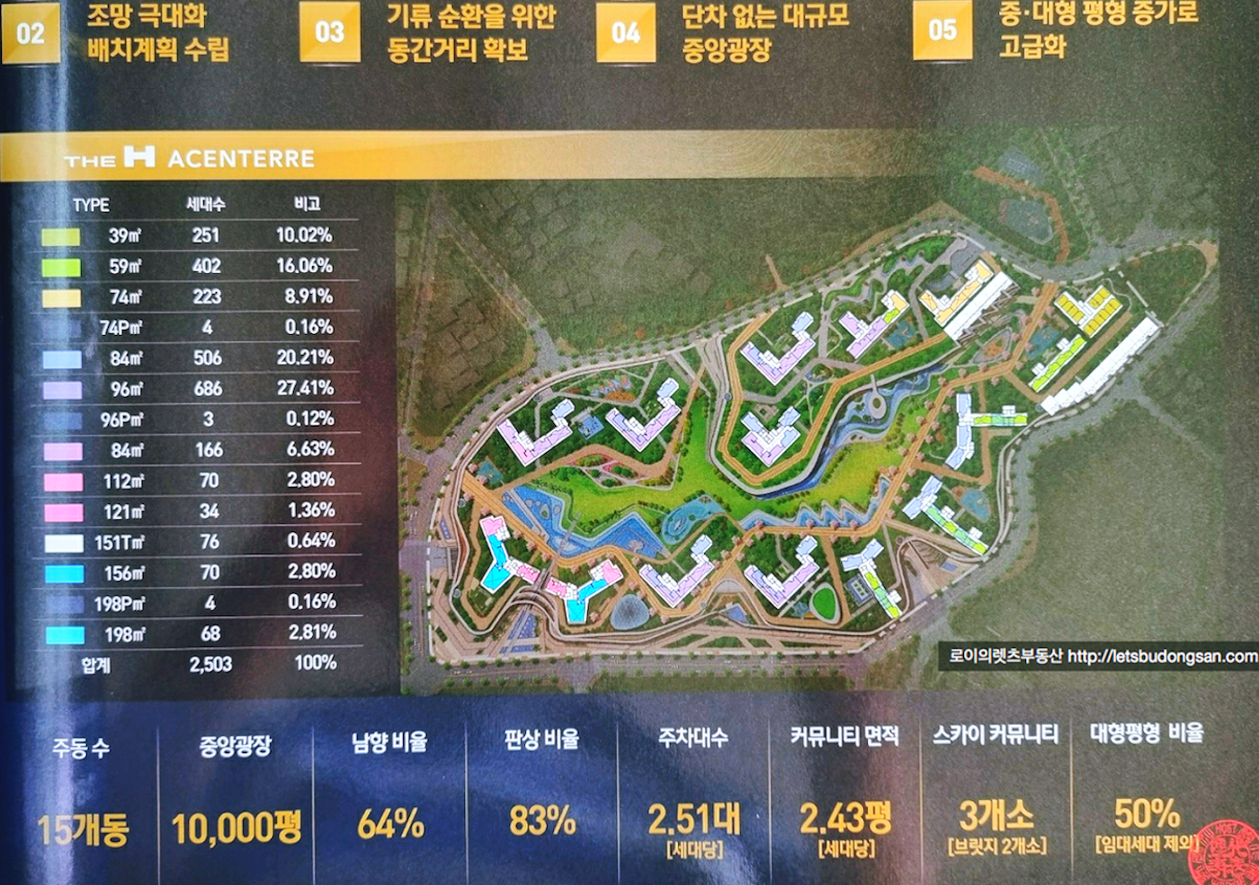 넉넉한 내부 단지를 가지고 있어 다양한 수요층을 안을수 있고 실거주적으로 큰 장점 입니다.