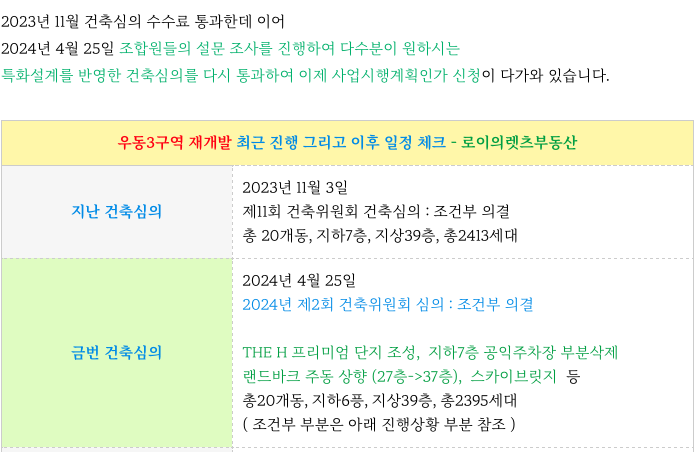 해운대 우동3구역 일자별 주요 진행 사항과 향후 일정등 추가정보는 아래 페이지를 참고 부탁드립니다.