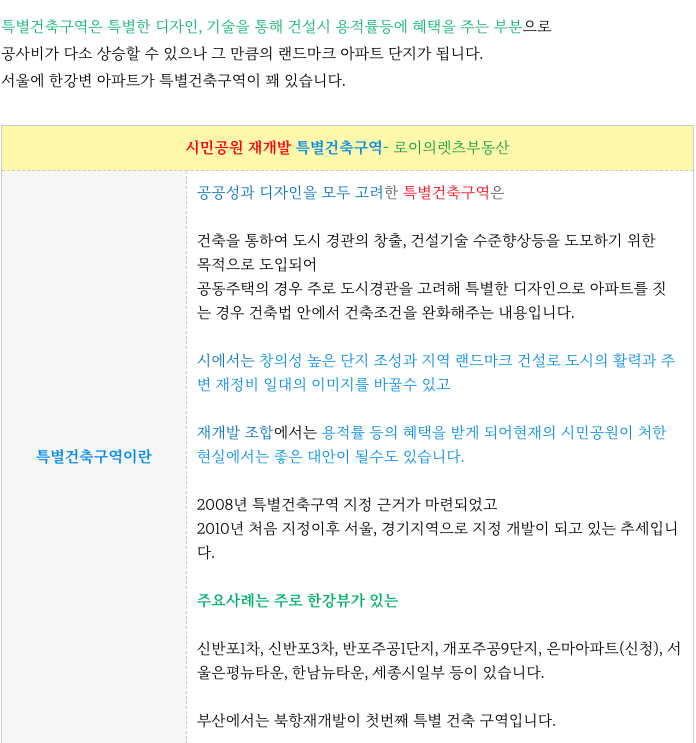초기 진행에 어려움이 많았지만 최종적으로 특별건축구역으로 지정으로 진행되고 있습니다.