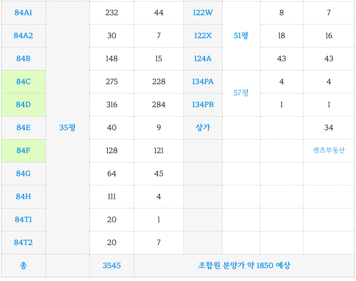 조합원이 작게 배정된 타입들은 좋은 동, 층수를 배정받을 수 있을 가능이 크다는 장점도 있습니다.