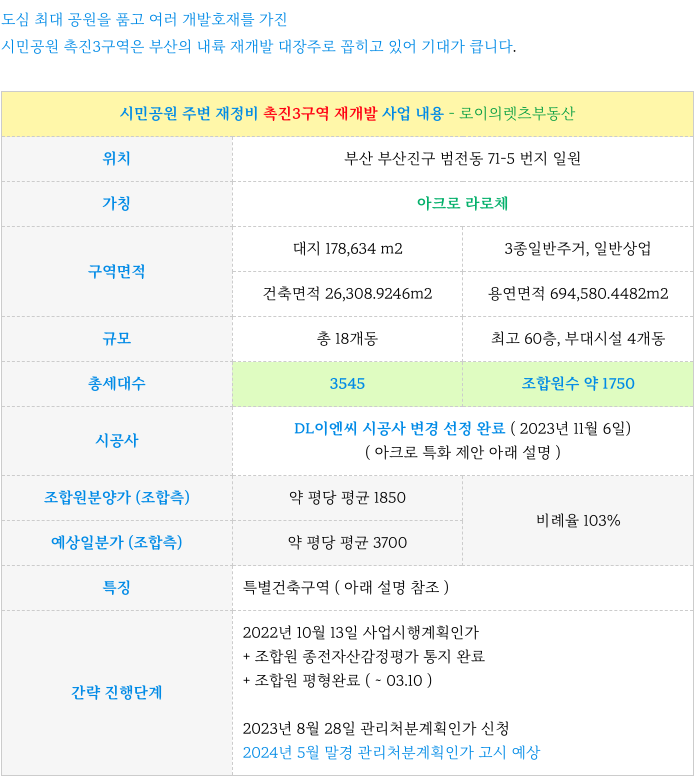 시민공원 촉진3구역 재개발 현 가능 최저 매물 & 소식