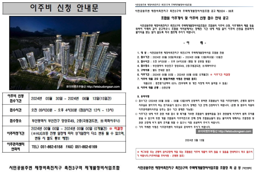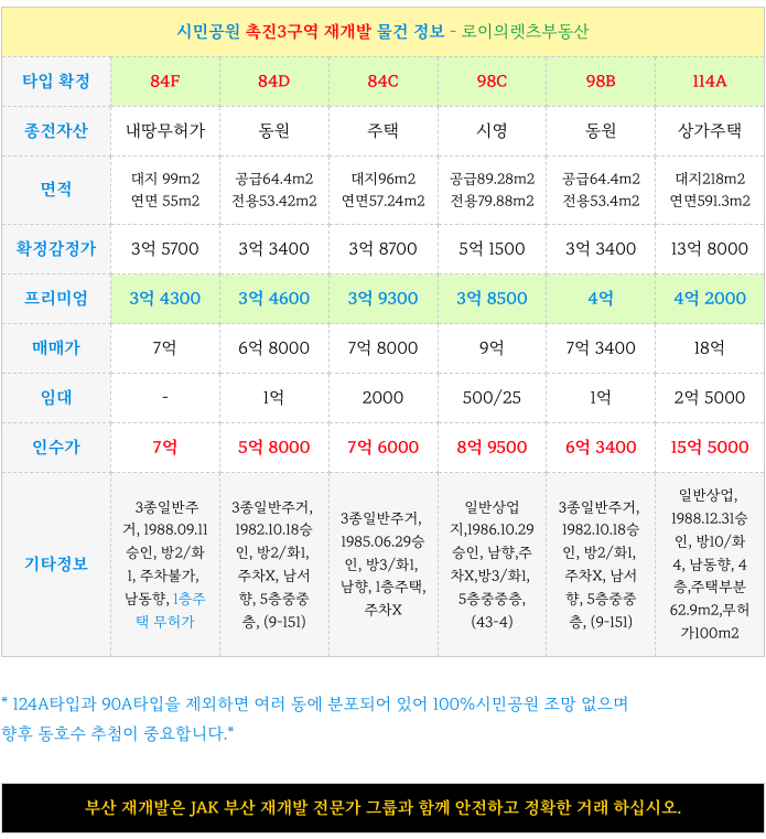 (부산재개발) 시민공원 촉진3구역 : 타입별 매물 & 이주비 신청공고 & 일정