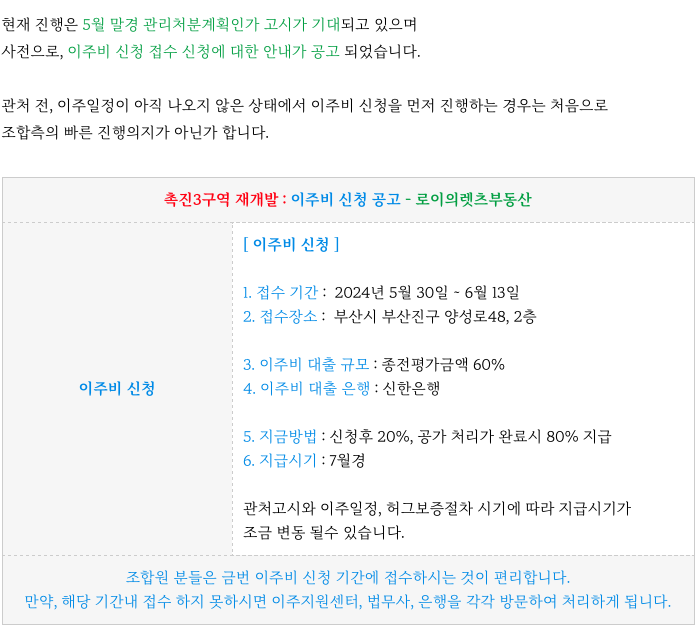 이주비 신청 앞둔 촉진3구역 재개발 최근 소식, 일정 그리고 각 타입별 매물 정리해 드리겠습니다.