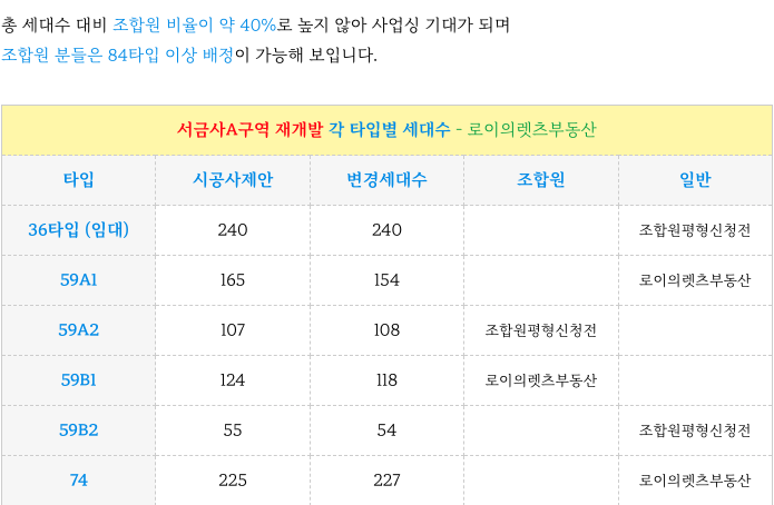 서금사A구역 자주 문의 주시는 조합원 배치 부분 간략 정리 드립니다.