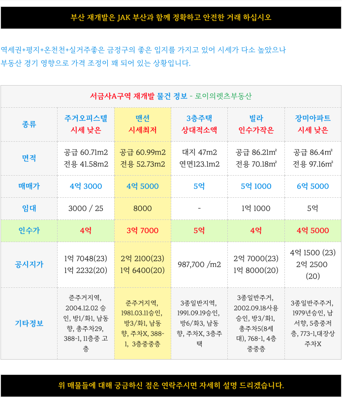 사시심의중인 서금사A구역 재개발 시세 낮은 엄선 매물 소개해 드립니다.