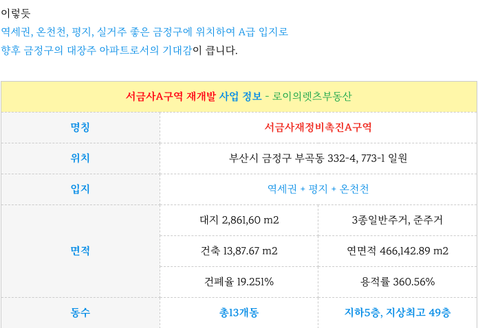 안녕하세요 로이의렛츠부동산 ( JAK 제이에이케이부산 ) 입니다. 오늘은 역세권 + 온천천 서금사A구역 ...