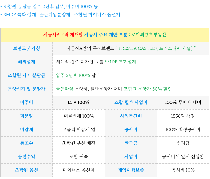 서금사A구역 시공사 롯데건설의 주요 제안안 정리 하였습니다.