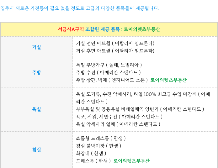 서금사A구역 조합원 제공 품목 소개드립니다.