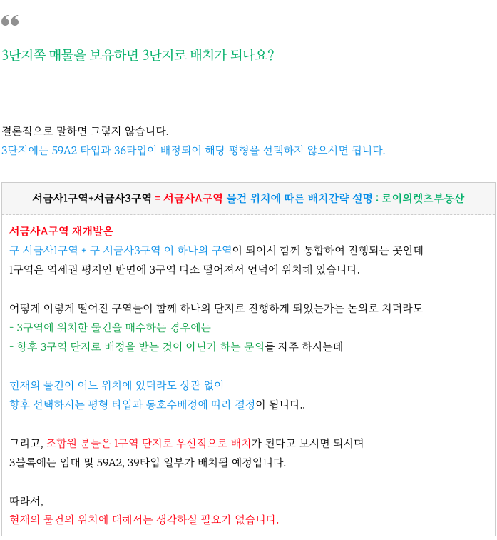 고객분들은 구 3구역=3단지에 위치한 물건은 3단지로 배정받는 것이 아닌가 하는 문의를 하십니다.
