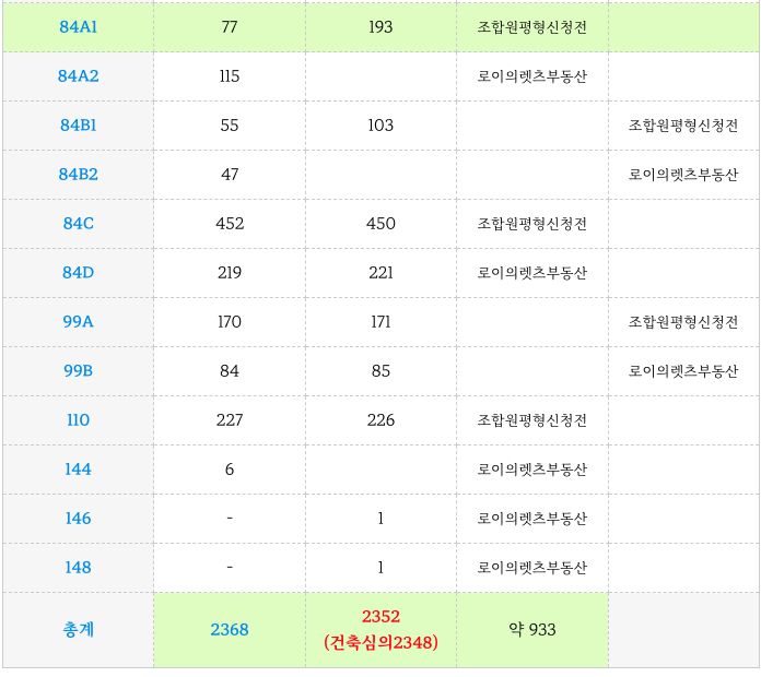 시공사 제안안 그리고 사시 접수시 기준(2352)도 같이 정리하였으며
