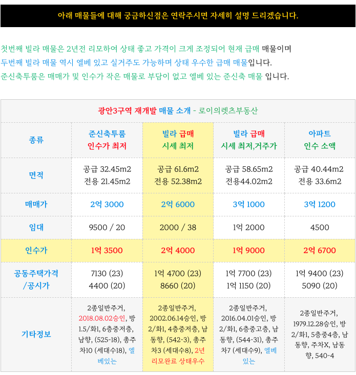 광안3구역 재개발 현재 최저 급매 매물들 소개 드리겠습니다.